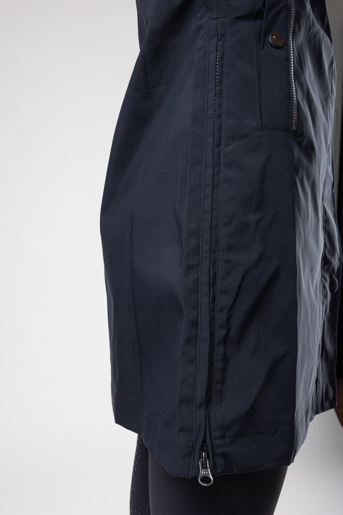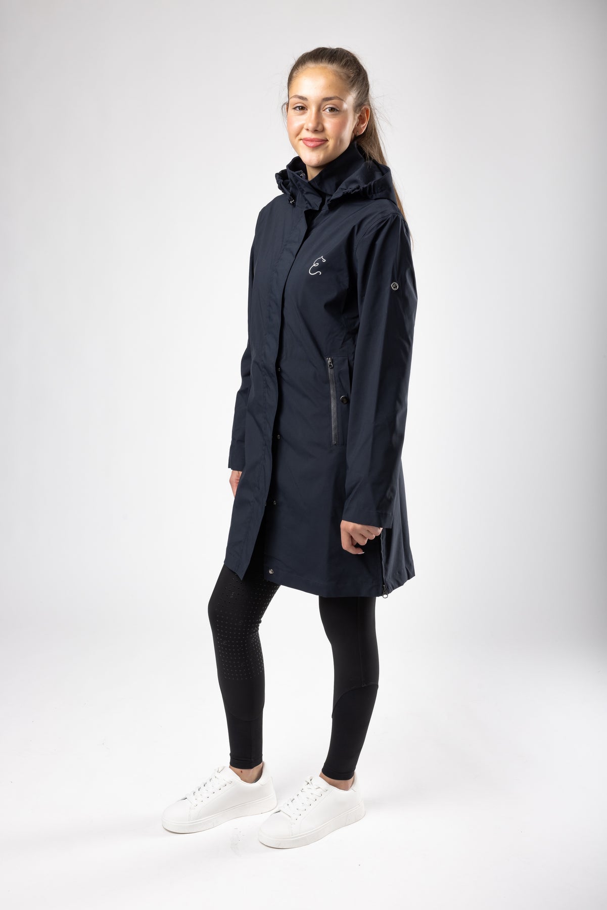 Mit dem speziell entwickelten Schnitt für Reiter bietet der Mantel außergewöhnlichen Komfort im Sattel. Der verlängerte Schnitt schützt dich vor Nässe und Wind. An den Seiten hat der Regenmantel Reisverschlüsse, die bis zur Hüfte reichen, damit man problemlos damit reiten kann – der ideale Regenmantel für Ausritte.